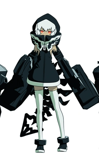 While Black★Gold Saw and Insane Black★Rock Shooter are fighting, she drags away the body of Dead Master to the same abyss she threw Chariot in. After the fight between Black★Gold Saw and Insane Black★Rock Shooter, Strength saves Black Gold Saw and, demonstrating the ability to manipulate the Hollow World, transports them all to another region and moves Black Gold Saw away for her own protection. She then fights Insane Black★Rock Shooter, using the immense strength of her Ogre Arms and her reality-altering abilites to gain the upper hand in the battle. She manages to crush Insane Black★Rock Shooter against a wall and then swings both of her fists down on her.